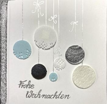 Wir experimentieren mit Tortendeckchen und Prägefolie, stanzen, schneiden, kleben und prägen. Dadurch entstehen einzigartige Weihnachtskarten in 3-D.