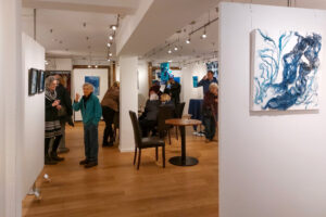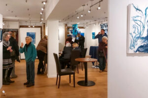 Großen Zuspruch hatte die Eröffnungsveranstaltung der Ausstellung „BLAU“ am 21. November 2025. Das Vorstandsteam – Eva Warmuth, Dr. Annette Roggatz und Andrea Gertz – begrüßte zahlreiche Besucherinnen und Besucher sowie viele ausstellende Künstlerinnen und Künstler des Vereins.