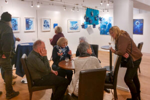 Mit einer Einführung zur Farbwahrnehmung eröffnete Dr. Annette Roggatz die Ausstellung und gab einen Einblick in neurowissenschaftliche Aspekte der Farbe Blau. Insgesamt 25 Vereinsmitglieder beteiligten sich mit 37 Werken, die das Thema Blau in unterschiedlichen künstlerischen Techniken sichtbar machen.