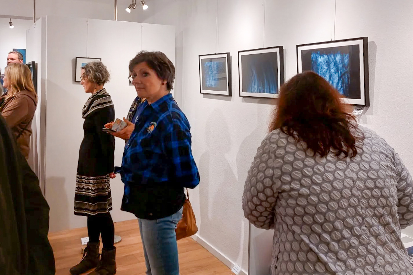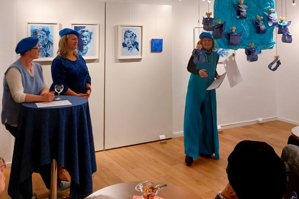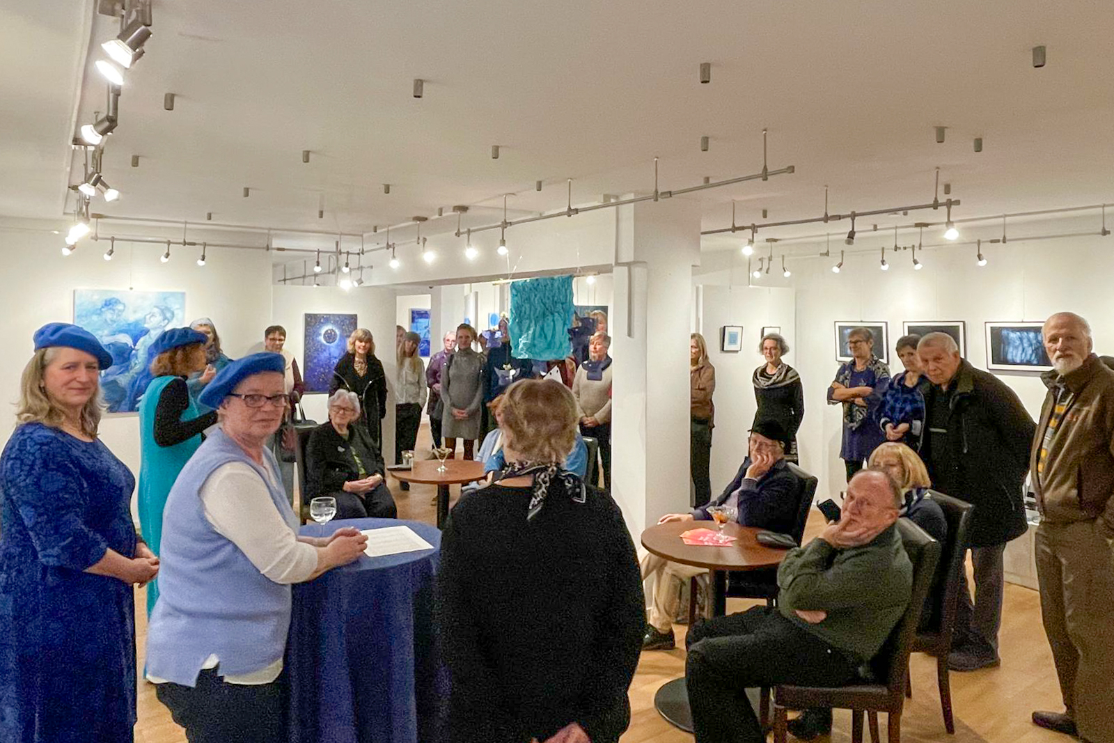 Großen Zuspruch hatte die Eröffnungsveranstaltung der Ausstellung „BLAU“ am 21. November 2025. Das Vorstandsteam – Eva Warmuth, Dr. Annette Roggatz und Andrea Gertz – begrüßte zahlreiche Besucherinnen und Besucher sowie viele ausstellende Künstlerinnen und Künstler des Vereins.