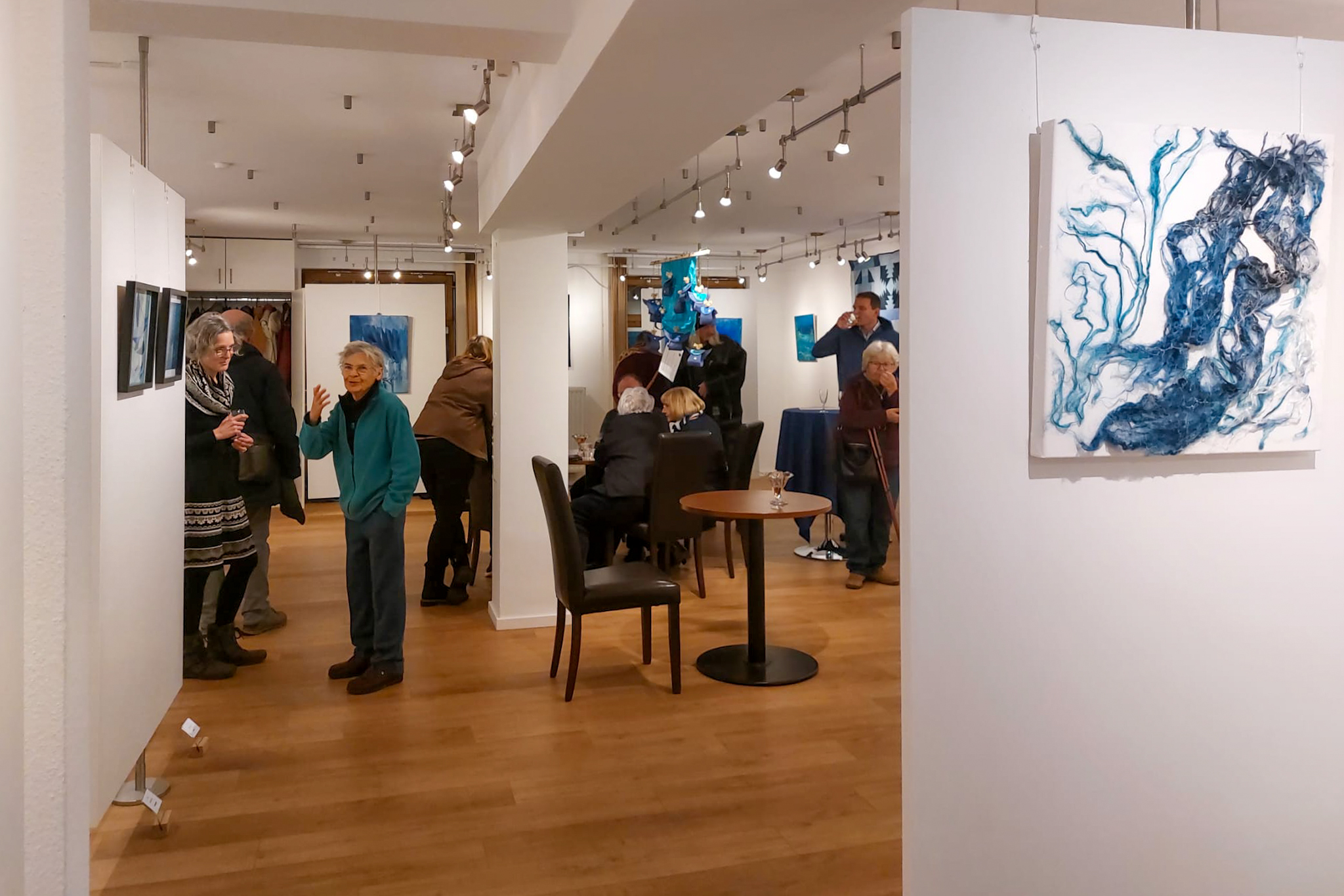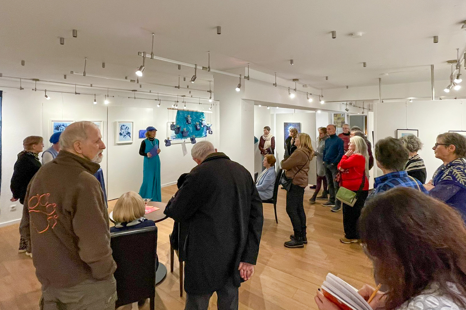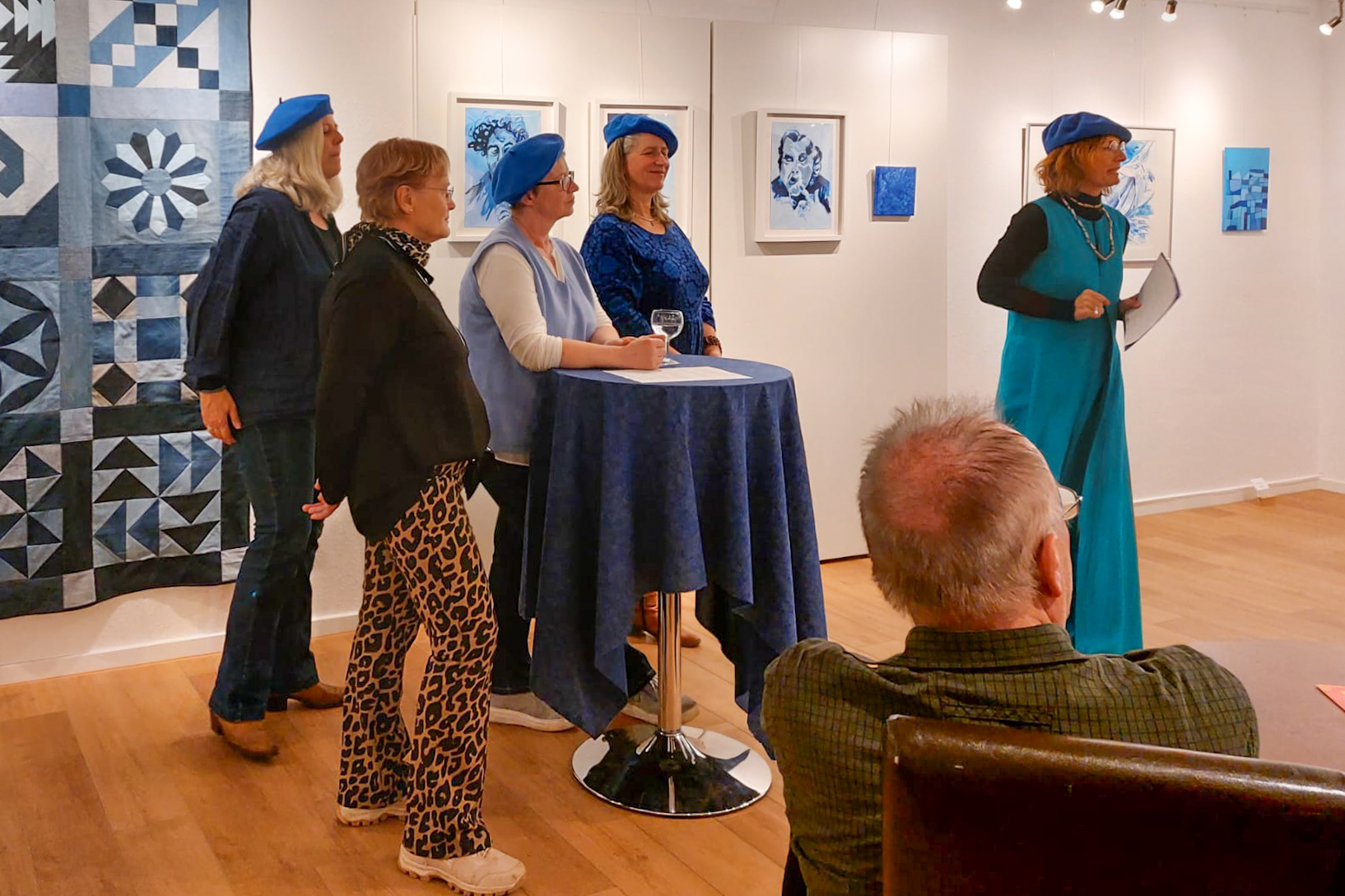 Mit einer Einführung zur Farbwahrnehmung eröffnete Dr. Annette Roggatz die Ausstellung und gab einen Einblick in neurowissenschaftliche Aspekte der Farbe Blau. Insgesamt 25 Vereinsmitglieder beteiligten sich mit 37 Werken, die das Thema Blau in unterschiedlichen künstlerischen Techniken sichtbar machen.